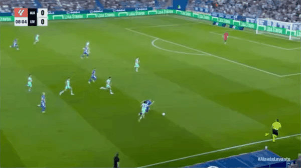 36’阿莱尼亚助攻,马丁内斯头球破门,阿拉维斯1-0莱万特